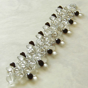 中央はマーガレットの花をイメージ。 サイドは涙型のビーズが揺れるブレスレット。 モノトーンですが華やかなデザインです。 + |