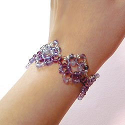 使っているビーズはほとんどが貴石。 ところどころにダイヤカットのスワロが光ります。 ラベンダーから紫へのグラデーションが 大人っぽい印象のブレスレットです。 + |