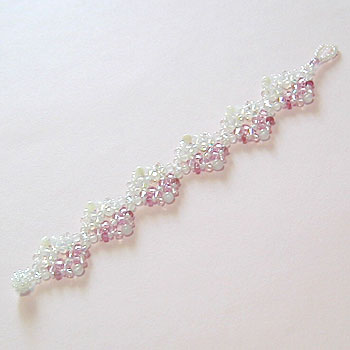 ホワイトから淡いピンクへのグラデーションが可愛い、 貴石で仕上げたブレスレットです。 ダイヤカットされた透かし編みがポイントです。 + |