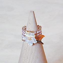 つややかなピンクシェルを ハイビスカスにカットした、 綺麗で華やかなデザインのリングです。 + |