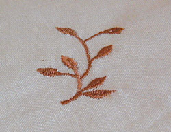 オフホワイト地に赤茶系の葉っぱの刺繍が入っています。