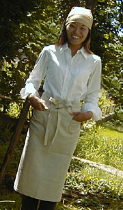 シンプルな麻のギャルソンエプロン。