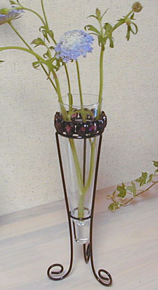 ヴァイオレットカラーの飾りのついたフラワーベース。