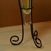 形が個性的でオブジェとしてそのまま置いても素敵です。 ※リサイクルガラスを使用していますのでガラス部分に 小さな気泡やキズなどが入っている場合がありますが フラワーベースとしては問題はありません。 |