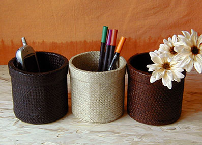 パンダンと呼ばれる植物の繊維を編みそれを芯材に貼り付けたボックスです。
