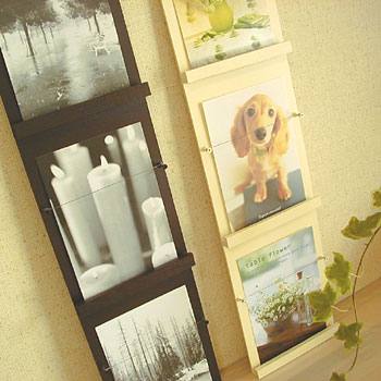 立て掛けても、壁に掛けてもGood! お好きなポストカードで、 気軽にお部屋のイメージチェンジができます。 ※上部左右にピンホールな穴があるので、 付属のネジ2個で壁に付けたり、 ピンなどで留めたりして壁掛け用にできます。 ※写真のポストカードは付いていません。 |