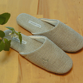 ブラウンの小さな千鳥格子の生地がかわいい、 きゃしゃなフォルムのスリッパです。 中もパイルのようなソフトな生地で、 全体にやわらかい手ざわりです。 ワンポイントの小鳥の刺しゅうもキュートです。 ※サイズはワンサイズで私が23cmなのですが、 かかとがあと1.5cm強くらい余る感じです。 ※形に若干のいびつな部分がある場合がありますが、 雑貨店でもこの状態で売られています。 ナチュラル系雑貨ということでご了承のうえ、ご注文ください。 |