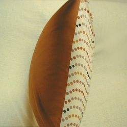 ユニークなデザインのクッションカバー。 裏面のブラウンの生地がちらりと見えて、 アクセントになったりします。 |