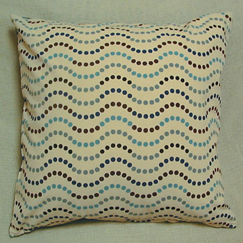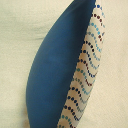 ユニークなデザインのクッションカバー。 裏面のブルーの生地がちらりと見えて、 アクセントになったりします。 |